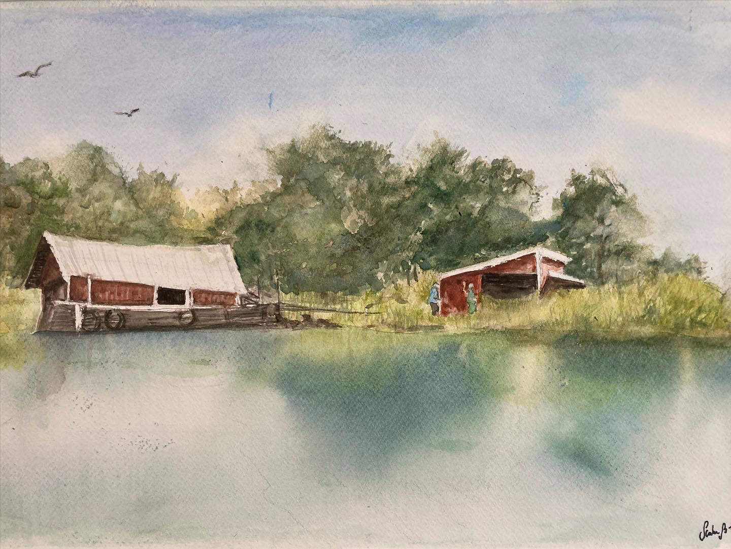 Havslandskap i akvarell. Lär dig måla vatten och strand i akvarell.Du får tips och instruktioner steg för steg .Du får lära dig hur du får en tavla levande med olika tekniker genom kontraster med tex färg