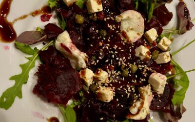 Rödbetscarpaccio med olika ostar